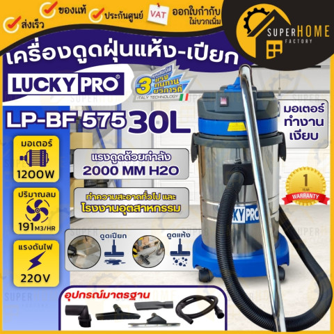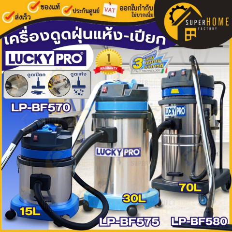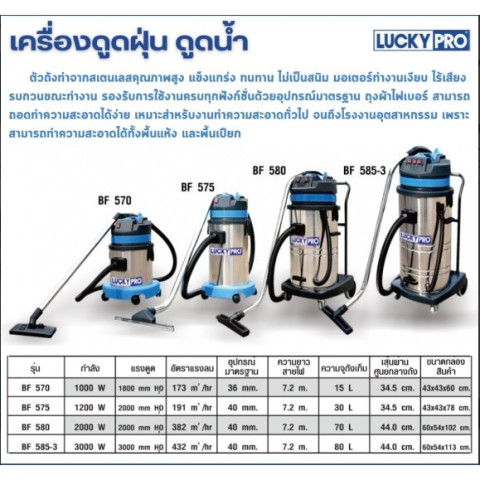 LUCKYPRO เครื่องดูดฝุ่นอุตสาหกรรม/ดูดน้ำ รุ่น LP-BF570 / LP-BF575 / LP-BF580 ครบจบงานทำความสะอาดทั้ง แห้ง-เปียก ตั้งแต่บ้าน ร้านค้า ไปจนถึงงานโรงงานอุตสาหกรรม ตัวถัง สเตนเลสคุณภาพสูง แข็งแรง ทนทาน ไม่เป็นสนิม ใช้งานได้ยาวนาน พร้อมมอเตอร์ทำงานค่อนข้างเงียบ ลดเสียงรบกวนระหว่างใช้งาน และมีอุปกรณ์มาตรฐานให้พร้อมใช้งานทันที