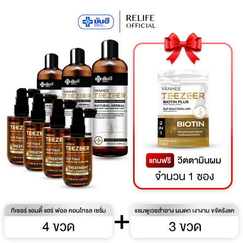 Yanhee Teezeer Shampoo เซ็ตดูแลผมครบสูตร แชมพู 3 + เซรั่ม 4 ฟรีวิตามินผม 1 จากยันฮี (เวชสำอาง) เพื่อผมดูหนาขึ้น เงางาม ลดรังแค และดูแลหนังศีรษะอย่างอ่อนโยน คิดค้นโดยทีมผู้เชี่ยวชาญของโรงพยาบาลยันฮี เหมาะสำหรับคนที่อยากกู้ผมบาง ผมร่วง และหนังศีรษะคันให้กลับมาสุขภาพดีอีกครั้ง