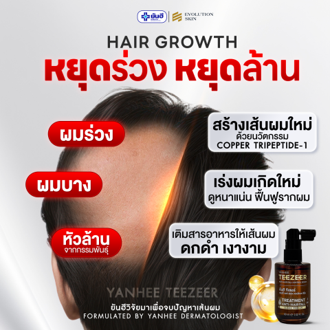 Yanhee Teezeer Serum (วิตามินผม 3 in 1) เซรั่มบำรุงสำหรับผมบาง ช่วยให้ผมดูหนา แข็งแรงขึ้น พร้อมเติมความชุ่มชื้นให้เส้นผม ใช้ควบคู่กับแชมพูเพื่อผลลัพธ์ที่ชัดเจนยิ่งขึ้น