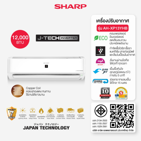 SHARP แอร์ติดผนัง J-Tech Inverter รุ่น AH-XP10YHB / AH-XP13YHB / AH-XP18YHB / AH-XP24YHB ราคา 29,394.00 บาท