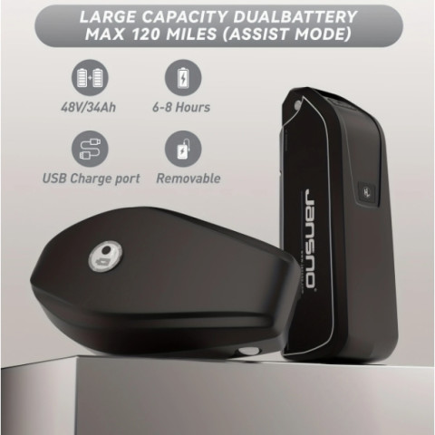 แบตเตอรี่ 48V 34A ถอดได้ ระยะทางสูงสุด 180km+ (ขึ้นอยู่กับน้ำหนัก/สภาพถนน/ความเร็ว)