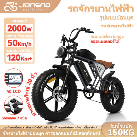 จักรยานไฟฟ้า 48V-34A สีเทา กำลังไฟ 2000W ขี่ไกลสูงสุด 180km+ เร็วสุด 50km/h พร้อมล้อใหญ่ 20 นิ้ว โครงเหล็กคาร์บอนสูงแข็งแรง และดีไซน์ กันน้ำ เหมาะทั้งการเดินทางประจำวัน ออกทริป หรือใช้งานบรรทุกของได้สบาย ๆ ด้วยรองรับน้ำหนักสูงสุดถึง 200KG แบตเตอรี่ ถอดออกได้ ชาร์จสะดวก ใช้งานคล่องตัวมากขึ้น
