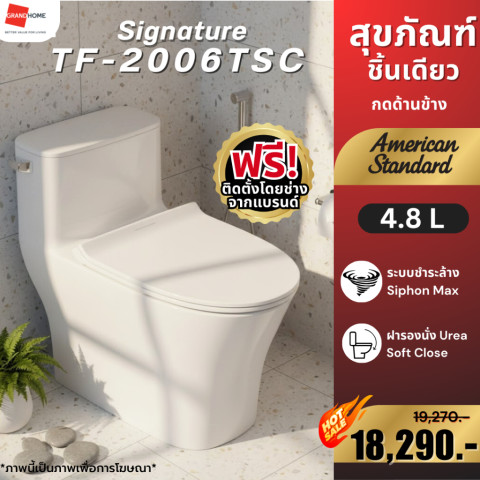 💥ติดตั้งฟรี💥 AMERICAN STANDARD ชักโครกชิ้นเดียว Signature TF-2006TSC-WT-0 (สีขาว) ระบบชำระล้าง SiphonMax