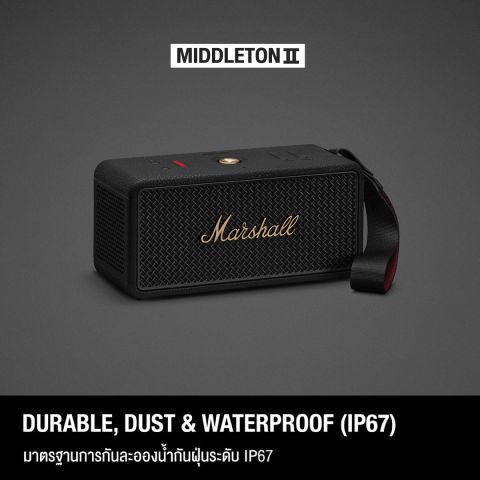 [NEW ARRIVAL] MARSHALL MIDDLETON II BLACK AND BRASS ลำโพงบลูทูธพกพาดีไซน์คลาสสิก โทน Black & Brass เอกลักษณ์สไตล์ Marshall ให้เสียงทรงพลังสำหรับทุกโมเมนต์ ไม่ว่าจะฟังเพลงที่บ้าน ปาร์ตี้กับเพื่อน หรือพกไปทริปก็เท่และจบในตัวเดียว