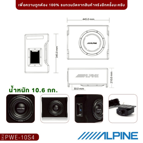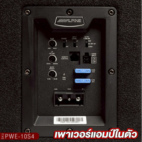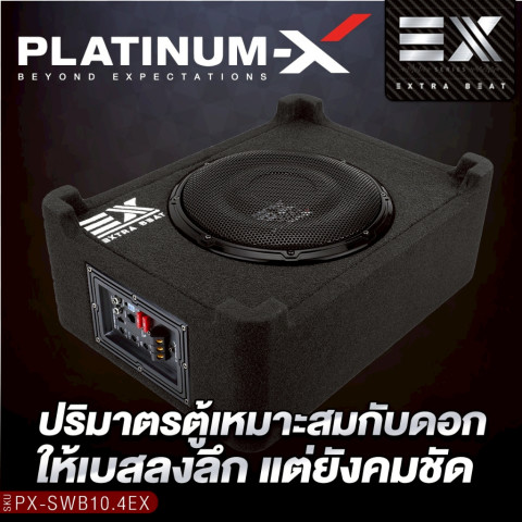 ALPINE/PLATINUM-X ตู้ซับสำเร็จรูป 10 นิ้ว รุ่น PWE-10S4 / PX-SWB10.4EX ราคา 4,950.00 บาท ยกระดับเสียงเบสให้ “แน่น ลึก กระหึ่มเต็มคัน” ด้วยตู้ซับสำเร็จรูปพร้อมแอมป์ในตัว ติดตั้งง่าย ประหยัดพื้นที่ เหมาะสำหรับคนที่อยากได้เบสเพิ่มแบบจบในตัวเดียว ปรับจูนได้ครบตามสไตล์การฟังของคุณ