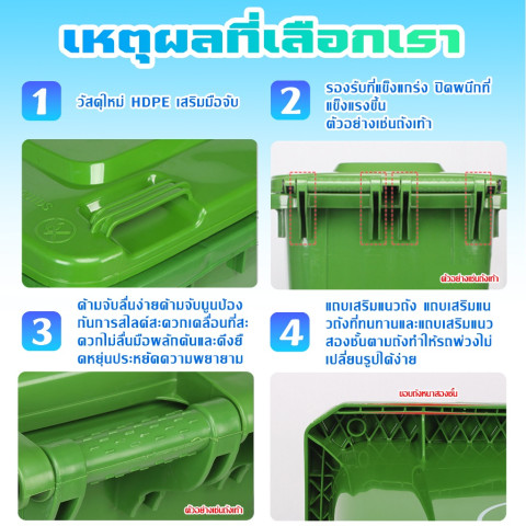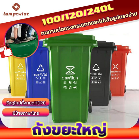 LampTwist ถังขยะใหญ่ 100L/120L/240L ถังขยะพลาสติกสำหรับใช้งานหนัก เหมาะทั้งบ้าน ร้านอาหาร ออฟฟิศ โรงงาน หรือพื้นที่ส่วนกลาง ช่วยจัดการขยะได้เป็นระเบียบ รองรับการแยกประเภทขยะได้สะดวก ดีไซน์เรียบสวย ใช้งานง่าย เคลื่อนย้ายคล่องด้วยล้อในทุกขนาด
