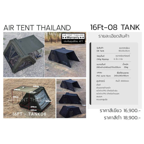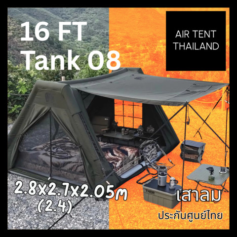 พร้อมส่ง! 16Ft – Tank 08 เต็นท์เสาลมขนาด 2.8 x 2.7 ม. โทนสี Earthtone เรียบเท่ เหมาะสำหรับครอบครัวหรือสายแคมป์ที่อยากได้เต็นท์ทรงโปร่งโล่ง ยืนได้เต็มตัว และจัดพื้นที่นอนได้จริงแบบสบาย ๆ วางเตียง 5 ฟุตได้ พร้อมมุมโต๊ะกลางหรือโซนพักผ่อนในเต็นท์