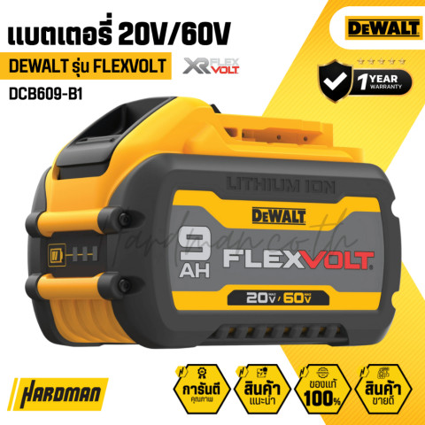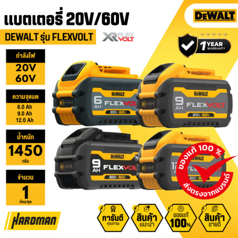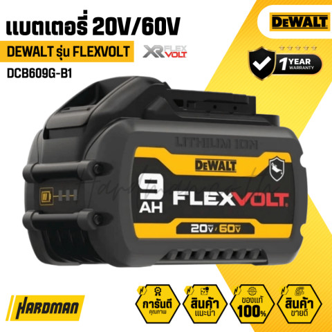 DEWALT Flexvolt 20V-60V MAX แบตเตอรี่ (Li-ion) รุ่น DCB609G-B1 (9.0Ah) แบตเตอรี่ประสิทธิภาพสูงที่ “สลับแรงดันอัตโนมัติ” ให้เหมาะกับเครื่องมือที่ใช้งาน รองรับทั้งงานหนักในระบบ 60V MAX และงานทั่วไปในระบบ 20V MAX ใช้แบตเตอรี่ก้อนเดียว แต่ยืดหยุ่นได้กับเครื่องมือไร้สาย DEWALT หลากหลายรุ่น เหมาะสำหรับช่างมืออาชีพและผู้ใช้งานที่ต้องการพลังงานสม่ำเสมอ ใช้งานต่อเนื่องได้ยาวนาน