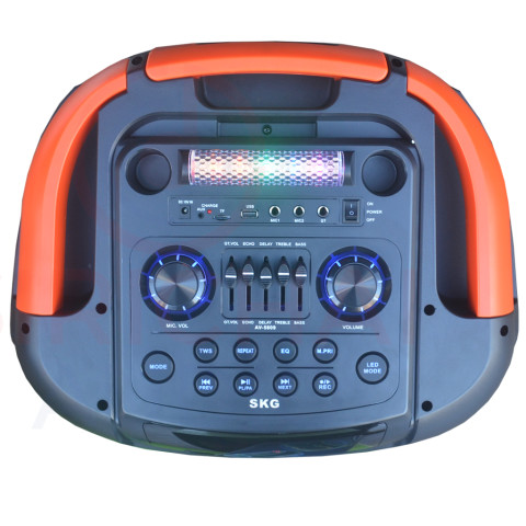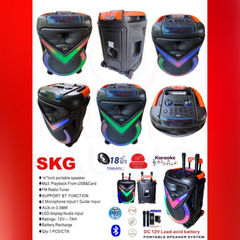 SKG ลำโพงล้อลาก 18 นิ้ว รุ่น AV-5809 พลังเสียงแน่น เบสหนักตับๆ พร้อมไฟวิบวับหลากสี เพิ่มความสนุกให้ทุกปาร์ตี้ งานอีเวนต์ งานวัด คาราโอเกะหน้าบ้าน หรือใช้ประกาศเสียงได้ครบจบในตัวเดียว ด้วยกำลังขับ 80W RMS (ขยายสูงสุด 9000W PNPO) และความสะดวกแบบล้อลาก เข็นไปได้ทุกที่