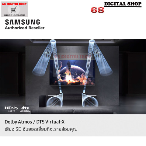 จัดวางเวทีเสียงด้านหน้าอย่างชัดเจน เสริมพลังเบสหนักแน่น และเติมมิติเสียงจากด้านบนเพื่อความสมจริงยิ่งขึ้นDolby Atmos / DTS Virtual:X