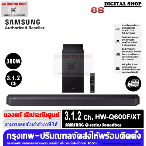 SAMSUNG HW-Q600F Q-series Soundbar ระบบเสียง 3.1.2Ch 380W รุ่น HW-Q600F/XT ยกระดับความบันเทิงในบ้านให้ “เหมือนอยู่ในโรงภาพยนตร์” ด้วยพลังเสียง 380W และระบบเสียงแท้จริงแบบ 3.1.2ch ที่มีลำโพงยิงเสียงขึ้นด้านบน 2 ช่องทาง พร้อมซับวูฟเฟอร์ไร้สาย ให้มิติเสียงเหนือศีรษะและแรงปะทะที่เต็มอารมณ์ทั้งดูหนัง ฟังเพลง และเล่นเกม