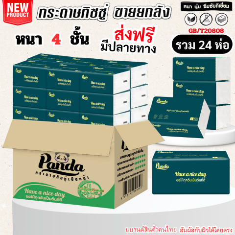 (24ห่อ) ทิชชู่เช็ดหน้า Panda ไซส์กลาง ทิชชู่คุณภาพที่ให้สัมผัสนุ่มสบายผิวด้วยความหนา 4 ชั้น เช็ดแล้วไม่ระคายเคือง พร้อมจุดเด่น ไร้ฝุ่น ไม่เป็นขุย เหมาะทั้งเช็ดหน้า เช็ดปาก และงานทำความสะอาดทั่วไป ใช้ได้ทุกวันอย่างมั่นใจ โดยเฉพาะบ้านที่มีเด็กก็ใช้งานได้สบายใจ