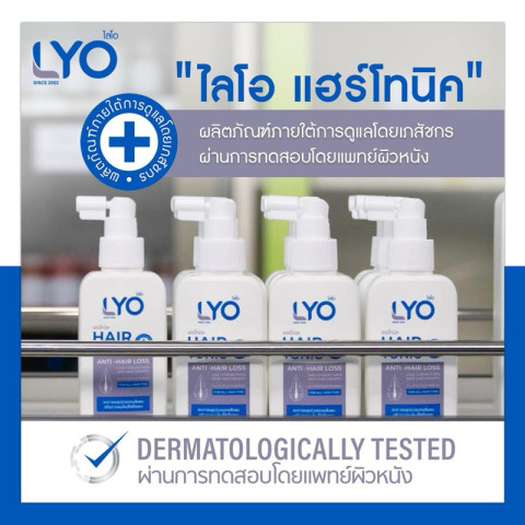ใช้แฮร์โทนิคหลังสระ – เช็ดหรือเป่าผมให้แห้งหมาด จากนั้นฉีด LYO แฮร์โทนิคให้ทั่วหนังศีรษะ เน้นบริเวณที่ผมบาง แล้วใช้ปลายนิ้วนวดเบาๆ เพื่อกระตุ้นการไหลเวียน โดยไม่ต้องล้างออก