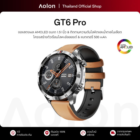 【ใหม่】Aolon GT6 Pro สมาร์ทวอทช์จอใหญ่ 1.51" AMOLED ดีไซน์พรีเมียมตัวเรือนโลหะ พร้อมแบตอึด 500mAh ตอบโจทย์ทั้งการใช้งานประจำวันและการออกกำลังกาย—เช็กสุขภาพได้ครบ จอชัด สีสวย แตะลื่น มองเห็นง่ายแม้กลางแจ้ง