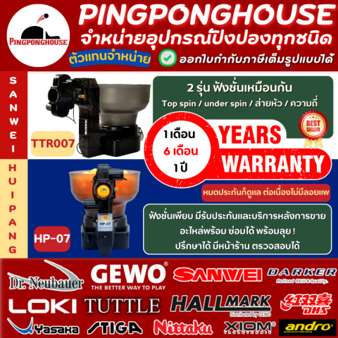 (ตัวแทนจำหน่าย) เครื่องยิงลูกปิงปอง Huipang HP07 / SANWEI TTR007 โดยตัวแทนจำหน่ายอย่างเป็นทางการจากร้านปิงปองเฮาส์ มาพร้อมบริการดูแลหลังการขายยาวๆ แม้หมดประกันแล้วก็ยังไม่โดนเท เหมาะสำหรับคนรักปิงปองที่ต้องการคู่ซ้อมระดับโปรในบ้านของคุณเอง