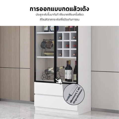 ดีไซน์ตู้กระจกเน้นความโปร่ง โล่ง มองเห็นได้รอบด้าน โครงสร้างแข็งแรง ใช้วัสดุกระจกคุณภาพดีและโครงเหล็ก/ไม้เคลือบผิวอย่างประณีต ให้ลุค Luxury เหมาะทั้งคอนโด บ้าน ร้านค้า และโชว์รูม ช่วยยกระดับบรรยากาศให้ดูหรูหราขึ้นทันตา