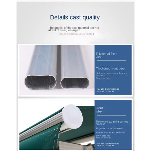 วัสดุผ้าคุณภาพสูง ผลิตจากโพลีเอสเตอร์เคลือบกันน้ำ ดัชนีกันน้ำมากกว่า 3000 มม. ช่วยป้องกันฝนและป้องกันแสงแดดซีดจาง