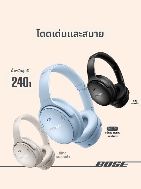 ด้วยเทคโนโลยีการตัดเสียงรบกวนแบบแอคทีฟ (Active Noise Cancelling) รุ่นล่าสุดของ Bose คุณสามารถตัดขาดจากเสียงรบกวนรอบตัว ไม่ว่าจะเป็นเสียงรถ เสียงผู้คน หรือเสียงรบกวนในออฟฟิศ พร้อมโหมดรับเสียงภายนอกที่ช่วยให้คุณได้ยินสิ่งรอบตัวอย่างเป็นธรรมชาติเมื่อจำเป็น การเชื่อมต่อแบบบลูทูธไร้สายให้สัญญาณเสถียร ใช้งานง่าย เชื่อมต่อได้ทั้งสมาร์ตโฟน แท็บเล็ต และโน้ตบุ๊ก รองรับทั้งระบบ iOS และ Android