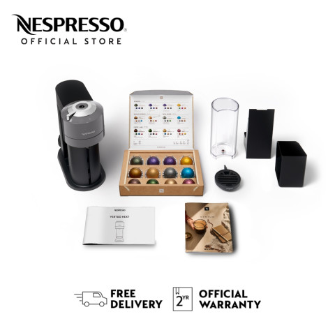 เปิดประสบการณ์กาแฟพรีเมียมแบบบาร์ิสต้าที่บ้านด้วย Nespresso เครื่องชงกาแฟ Vertuo Next สี Grey พร้อมชุดกาแฟแคปซูล 4 Sleeves Set ในราคาเพียง 10,950 บาท ดีไซน์ทันสมัย ขนาดกะทัดรัด เหมาะกับทุกมุมโปรดของคนรุ่นใหม่ที่รักทั้งกาแฟและการตกแต่งบ้าน