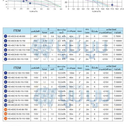 สเปคตัวปั๊ม (ตัวอย่างรุ่นบ่อ 4 นิ้ว 1100w): รองรับบ่อขนาด 4 นิ้ว ให้ปริมาณน้ำประมาณ 15Q (ประมาณ 15 ลบ.ม./ชม. โดยขึ้นอยู่กับระยะส่ง) ระยะส่งแนวดิ่งสูงสุดราว 55 เมตร และทางออกขนาด 2 นิ้ว เหมาะกับงานส่งน้ำขึ้นถังพักหรือระบบสปริงเกลอร์
