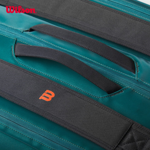 Blade V9 Super Tour 15 Pack WR8031801001 กระเป๋าเทนนิสพรีเมียมจาก Official Store ที่ออกแบบมาเพื่อผู้เล่นเทนนิสระดับจริงจังและโค้ชโดยเฉพาะ โดดเด่นด้วยดีไซน์เดียวกับไม้เทนนิส Blade V9 ที่เน้นความโฉบเฉี่ยว ทันสมัย และสี Emerald Green สุดหรู ช่วยเสริมลุคมืออาชีพในทุกแมตช์แข่งขัน