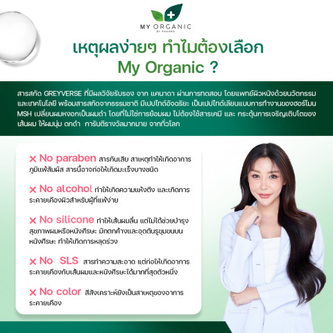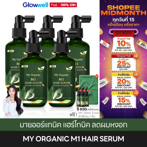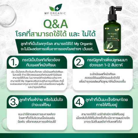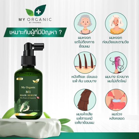 ให้ My Organic M1 Hair Serum เป็นตัวช่วยดูแลเส้นผมและหนังศีรษะของคุณทุกวัน คืนความมั่นใจให้ผมดูสุขภาพดี เงางาม และดูอ่อนวัยขึ้นอย่างเป็นธรรมชาติ โดยไม่ต้องเสี่ยงกับสารเคมีรุนแรงอีกต่อไป