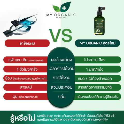 ไม่ต้องทนแสบ คัน หรือระคายเคืองจากสารเคมีรุนแรงอีกต่อไป My Organic M1 Hair Serum ช่วยบำรุงลึกถึงรากผมและหนังศีรษะ พร้อมฟื้นฟูสมดุล ให้เส้นผมดูหนา แข็งแรง และสีผมดูเป็นธรรมชาติขึ้นอย่างอ่อนโยน เหมาะสำหรับทั้งผู้ชายและผู้หญิงที่ต้องการดูแลเส้นผมในระยะยาว โดยไม่พึ่งยาย้อมผม