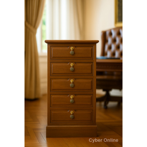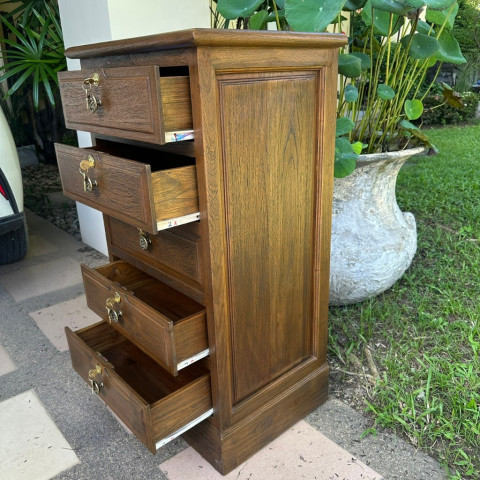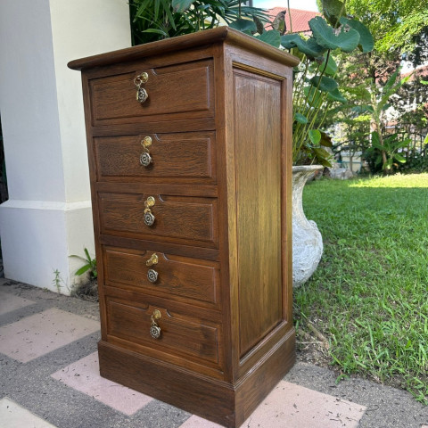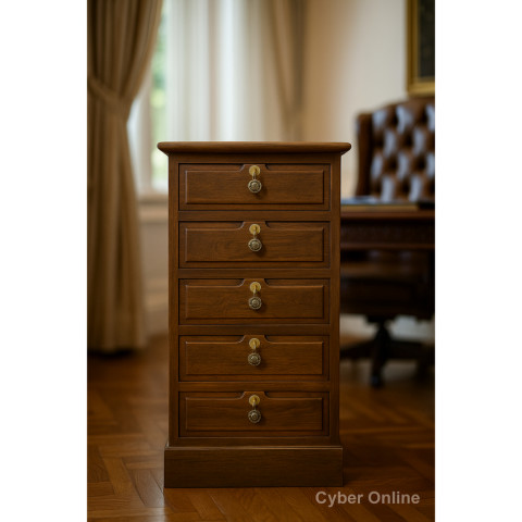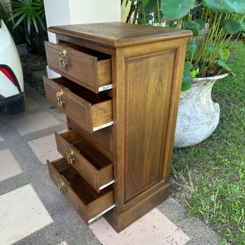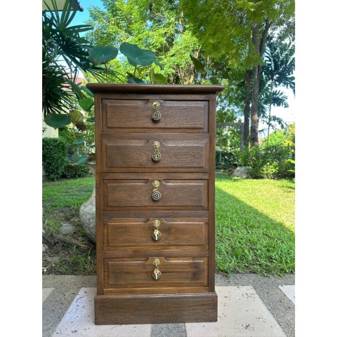เติมเสน่ห์วินเทจให้บ้านหรือออฟฟิศของคุณด้วย ตู้ไม้สัก วินเทจ 5 ลิ้นชัก สีเสี้ยนดำ ดีไซน์เรียบหรู ดูคลาสสิก ใช้งานครบครัน เหมาะทั้งสำหรับจัดเก็บเอกสาร A4 และเก็บของมีค่าที่ต้องการความเป็นส่วนตัว พร้อมระบบล็อกกุญแจทุกชั้น เพิ่มความมั่นใจและปลอดภัยในการจัดเก็บ