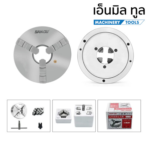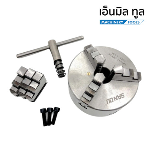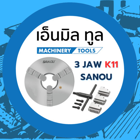 หัวจับ 3 จับ เข้าพร้อม (3 Jaw Chuck) รุ่น K11 ยี่ห้อ SANOU ตัวช่วยงานกลึงที่ยึดชิ้นงานได้แน่น ศูนย์ตรง เปิด-ปิดรวดเร็ว เหมาะสำหรับใช้งานกับเครื่องกลึงทั่วไป ทั้งงานซ่อมบำรุงและงานผลิตที่ต้องการความแม่นยำและความคล่องตัว