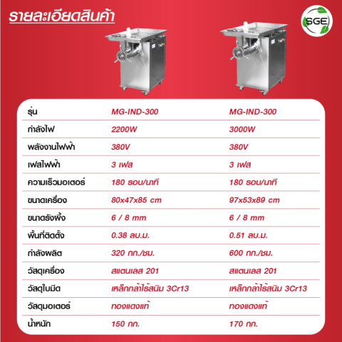 SGE เครื่องบดหมู/บดเนื้อ รุ่น MG-IND (กำลังผลิตสูงสุด 600 กก./ชม.)