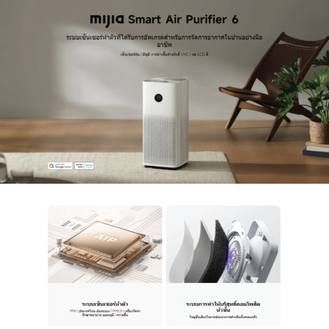 (NEW) MIJIA Smart Air Purifier 6 เครื่องฟอกอากาศอัจฉริยะที่ยกระดับอากาศในบ้านให้สะอาดขึ้นอย่างมั่นใจ ด้วยการตรวจจับฝุ่นและสารก่อภูมิแพ้ พร้อมระบบฆ่าเชื้อด้วยรังสี UVC และ หน้าจอ LCD แสดงสถานะการทำงานแบบเข้าใจง่าย เหมาะสำหรับห้องนอน ห้องนั่งเล่น คอนโด หรือบ้านที่มีเด็ก ผู้สูงอายุ และคนที่กังวลเรื่องคุณภาพอากาศ