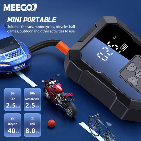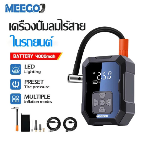 เติมลมยางได้ทุกที่ทุกเวลาด้วย MeeGoo เครื่องปั๊มลมแบบพกพา เครื่องสูบลมไฟฟ้า Electric Air Pump มัลติฟังก์ชั่น เครื่องเดียวจบทุกการใช้งาน ทั้งรถยนต์ รถมอเตอร์ไซค์ จักรยาน ไปจนถึงลูกบอลและอุปกรณ์กิจกรรมกลางแจ้ง ขนาดกะทัดรัด พกง่าย ใช้งานสะดวก พร้อมระบบตัดการทำงานอัตโนมัติให้คุณมั่นใจทุกการเติมลม