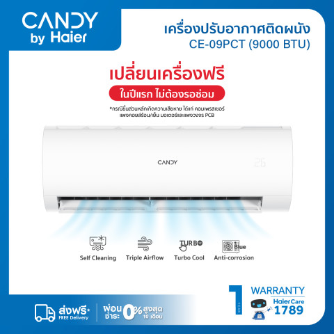 [BCD]CANDY เครื่องปรับอากาศติดผนัง Fixed Speed รุ่น Eco Cool ขนาด 9000 BTU (CE-09PCT) คือคำตอบของห้องขนาดกะทัดรัดที่ต้องการความเย็นสบายแบบคงที่ ใช้งานง่าย เย็นเร็ว และให้ลมเย็นกระจายทั่วห้อง เหมาะสำหรับห้องนอน คอนโด หรือห้องทำงานส่วนตัว ช่วยสร้างบรรยากาศน่าอยู่ตลอดวันในดีไซน์ติดผนังที่ประหยัดพื้นที่
