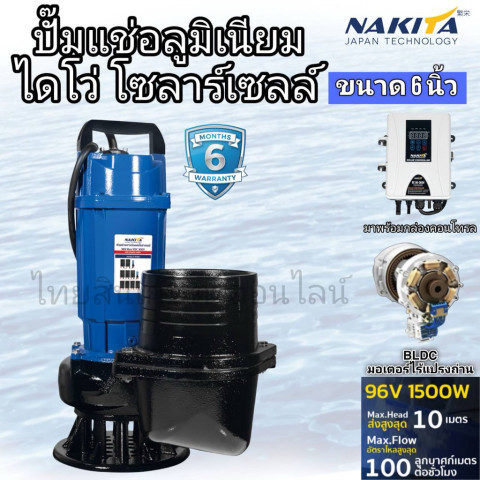 ไดโว่โซล่าเซลล์ 1500W ขนาด 6” Nakita พร้อมกล่องคอนโทรล ทางเลือกสำหรับงานสูบน้ำที่ต้องการ “น้ำเยอะ” ใช้งานได้ต่อเนื่องด้วยพลังงานแสงอาทิตย์ พร้อมกล่องคอนโทรลช่วยจัดการระบบให้ทำงานเสถียร เหมาะกับงานเกษตร สวน ไร่นา บ่อปลา หรือการสูบน้ำสำรองในพื้นที่ห่างไกลไฟฟ้า