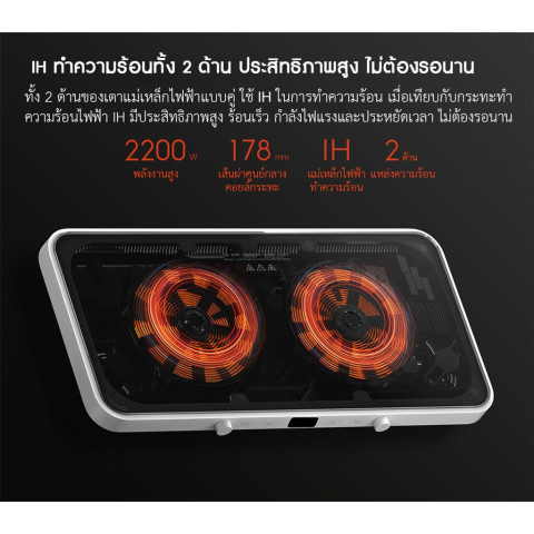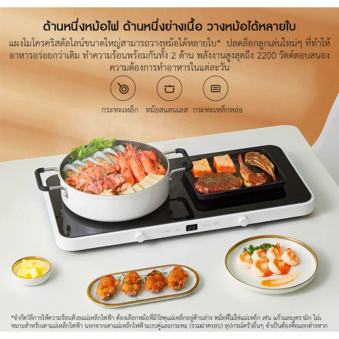 Xiaomi Double Induction Cooker - เตาแม่เหล็กไฟฟ้าแบบคู่ (รวมกระทะ) เตา IH ของแท้จาก Xiaomi Youpin ที่ยกระดับครัวบ้านให้ “ทำได้มากกว่า” ในเครื่องเดียว ด้วยหัวเตาคู่ที่ควบคุมอุณหภูมิแยกอิสระซ้าย-ขวา ร้อนเร็ว กำลังไฟแรงสูงสุด 2200W พร้อมแผงไมโครคริสตัลขนาดใหญ่ วางหม้อได้สะดวก และยังแถมกระทะใบใหญ่ 63 ซม. พร้อมฝา เหมาะทั้งมื้อเร่งด่วนในวันทำงาน ไปจนถึงปาร์ตี้หม้อไฟ/ย่าง/ผัดกับเพื่อนและครอบครัว