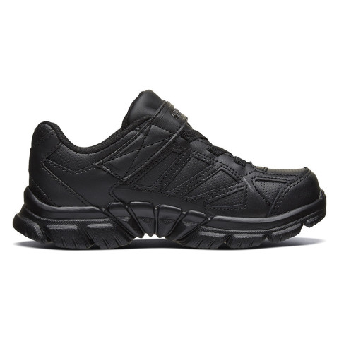 ตัวรองเท้าผลิตจากหนังคุณภาพดีสีดำ (Black) ให้ลุคเรียบเท่และดูแลง่าย เสริมด้วยพื้นรองเท้า Tough Trax ที่ออกแบบมาเป็นพิเศษเพื่อการยึดเกาะที่ดีบนพื้นผิวหลากหลายชนิด เด็กๆ จึงสามารถวิ่ง กระโดด และเล่นสนุกได้อย่างมั่นใจตลอดทั้งวัน พร้อมแผ่นรองพื้นด้านในที่นุ่มสบาย ช่วยซัพพอร์ตเท้า ลดความเมื่อยล้า และให้ความสบายเท้าตั้งแต่เช้าจรดเย็น