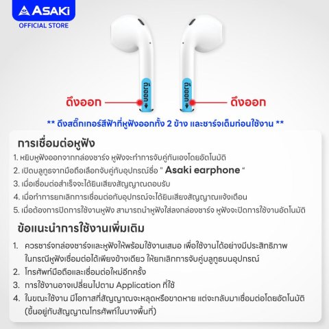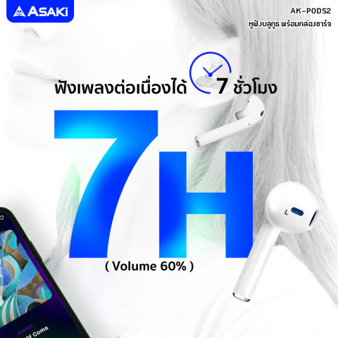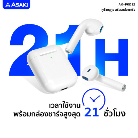 สัมผัสความอิสระของการฟังเพลงและการสื่อสารแบบไร้สายกับ Asaki Earphone หูฟังบลูทูธไร้สาย พร้อมกล่องชาร์จ รุ่น AK-PODS2 หูฟัง True Wireless ดีไซน์กะทัดรัด ที่มาพร้อมคุณภาพเสียงคมชัด เบสแน่นทรงพลัง ใช้งานสะดวกตอบโจทย์ทุกไลฟ์สไตล์ ไม่ว่าจะใช้คุยโทรศัพท์ ดูหนัง ฟังเพลง หรือรับชมคอนเทนต์สตรีมมิ่งต่างๆ ได้อย่างลื่นไหลในทุกวัน