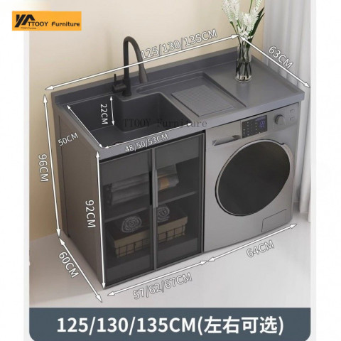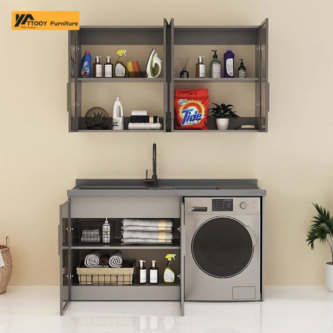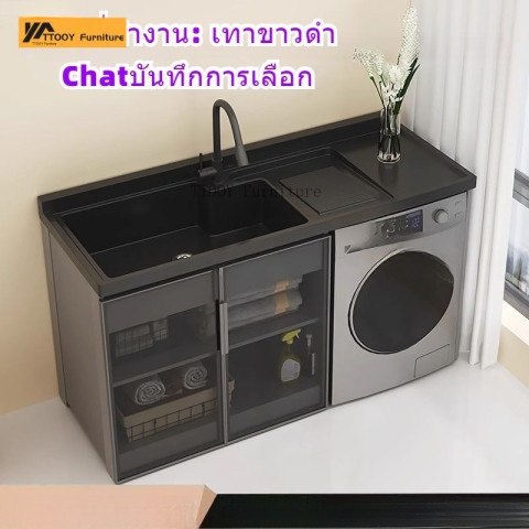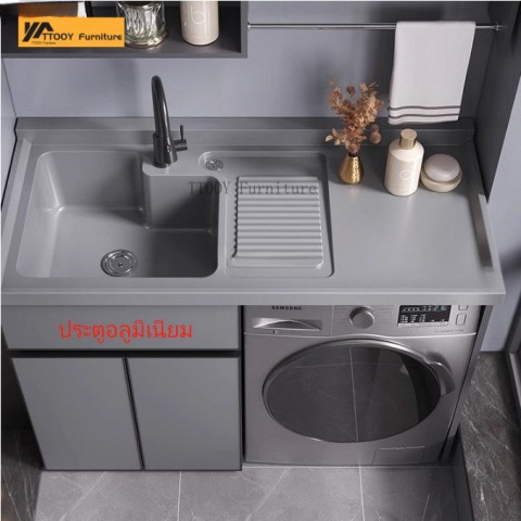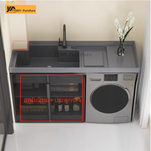เติมเต็มพื้นที่ซักผ้าระเบียงของคุณให้ใช้งานได้คุ้มค่าทุกตารางนิ้วด้วย 【อัพเกรด】ตู้ซักผ้าระเบียงอลูมิเนียม 95–160 ซม. พร้อมอ่างล้างมือและกระจก ดีไซน์ทันสมัย ผลิตจากอลูมิเนียมคุณภาพดี แข็งแรง ทนทาน ไม่ขึ้นสนิม เหมาะสำหรับใช้งานทั้งในบ้านและคอนโด