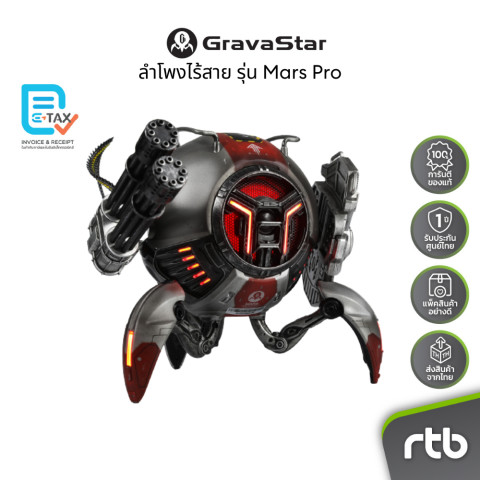 GravaStar Mars Pro ลำโพงไร้สายดีไซน์ Sci‑fi ทรงหุ่นยนต์สุดล้ำ ที่ยกระดับทั้ง “เสียง” และ “บรรยากาศ” ให้พื้นที่ของคุณดูเท่มีสไตล์ทันที เหมาะทั้งวางตกแต่งโต๊ะทำงาน มุมเกมมิ่ง หรือพกไปเปิดเพลงได้ทุกที่ ด้วยโครงสร้างแข็งแรงจากโลหะผสมและระบบเสียงทรงพลังรอบด้าน