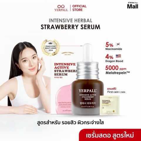 เซรั่มสตอเบอรี่ สูตรใหม่ 15 ML. เซรั่มบำรุงผิวที่อัดแน่นด้วยพลังการฟื้นบำรุงและเติมความชุ่มชื้น เพื่อผิวที่ดูเรียบเนียน กระจ่างใส และเปล่งปลั่งอย่างเป็นธรรมชาติ เหมาะสำหรับผู้ที่ต้องการดูแลผิวแบบเร่งด่วนในทุกวัน พร้อมรับของแถมสุดคุ้ม เฟิร์สแคร์สูตรใหม่ 1 ซอง ช่วยเสริมการบำรุงให้ผิวดูอิ่มฟูยิ่งขึ้น