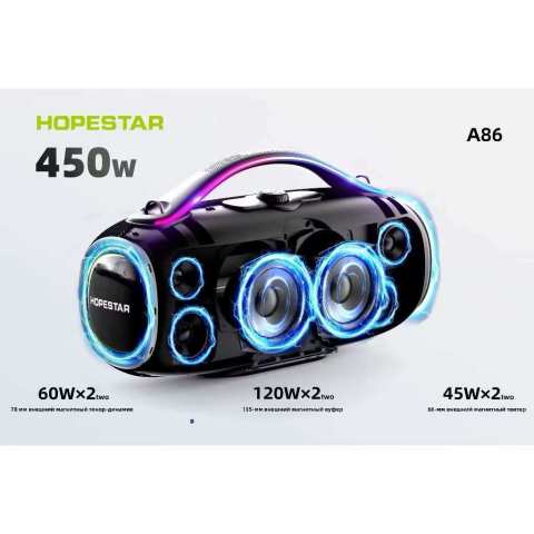 อิสระทางดนตรีที่ทรงพลังในทุกที่ที่คุณไปด้วย SY HOPESTAR ลำโพงบลูทูธ A86 450W ลำโพงปาร์ตี้พลังเสียงจัดเต็มมาพร้อมไมค์ลอย 1 อัน ปรับเสียงไมค์และปรับเบสได้ในตัว เหมาะสำหรับงานเลี้ยง ปาร์ตี้ คาราโอเกะกลางแจ้ง หรืองานกิจกรรมทุกประเภท ดีไซน์แข็งแรง ทนทาน พกพาสะดวก ให้คุณสนุกได้ยาวนานด้วยแบตเตอรี่ความจุสูงถึง 30000mAh