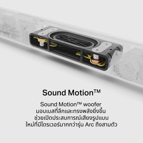 ซาวด์บาร์ Arc Ultra – ดีไซน์เพรียวบาง วางใต้ทีวีได้สวยกลมกลืน ใช้ไดรเวอร์คุณภาพสูงหลายตัวเพื่อสร้างเวทีเสียงกว้างและแม่นยำ