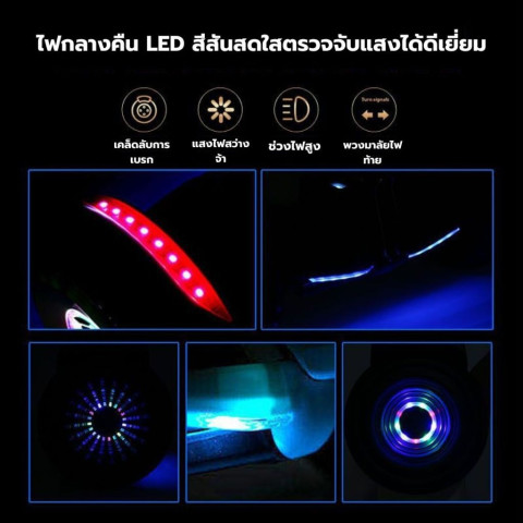 ติดตั้งไฟ LED รอบตัวเครื่อง เพิ่มความปลอดภัยในการเล่นตอนเย็นหรือกลางคืน พร้อมดีไซน์ที่ทำให้ตัวเครื่องดูล้ำสมัยสะดุดตา เหมาะกับสายแต่งสายเล่นที่ชอบความโดดเด่นไม่เหมือนใครเชื่อมต่อบลูทูธ เปิดเพลงได้ในตัว
