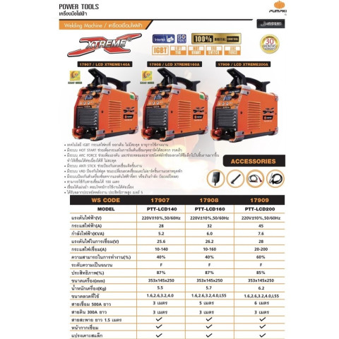 ขนาดลวดที่ใช้: 1.6 / 2.6 / 3.2 / 4.0 มม. (รองรับ L55)XTREME 200A (17909/PTT-LCD200)