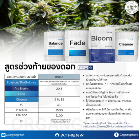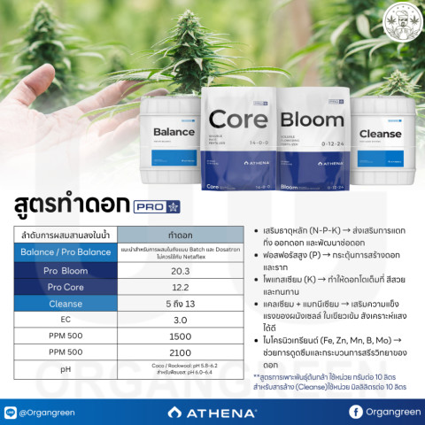 ใช้ร่วมกับ Athena Pro Bloom ในช่วง 3 สัปดาห์สุดท้ายของระยะออกดอก