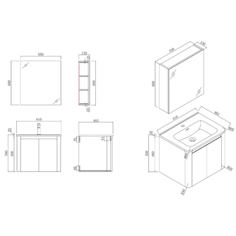 ชุดตู้และอ่าง: 610 x 500 x 465 มม.