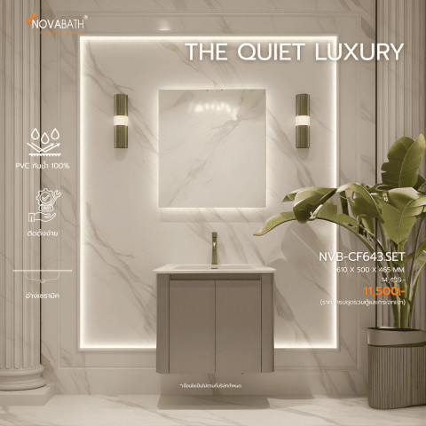 NOVABATH ชุดเฟอร์นิเจอร์อ่างล้างหน้า/อ่างล้างมือ รุ่น NVB-CF643 ดีไซน์เรียบหรูพร้อมโทนสีให้เลือก (เบจ/เขียว) ช่วยยกระดับห้องน้ำให้ดูเป็นระเบียบและทันสมัย มาพร้อมตู้เก็บของและอ่างเซรามิคใช้งานสะดวก เหมาะทั้งบ้านพักอาศัย คอนโด หรือโครงการที่ต้องการความลงตัวของฟังก์ชันและความสวยงาม [สินค้าพร้อมจัดส่ง]