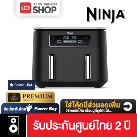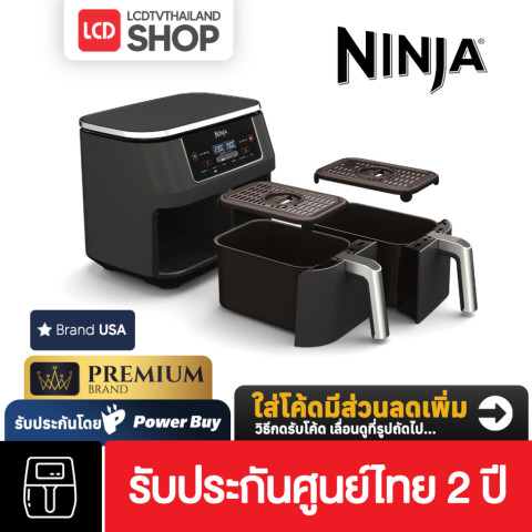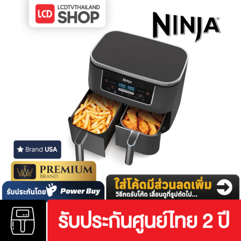 Ninja Foodi หม้อทอดไร้น้ำมัน แบบ 2 ตะกร้า Dual Zone Air Fryer AF300 (รับประกันศูนย์ไทย 2 ปี) ในราคา 5,990.00 บาท ตัวช่วยทำอาหารที่ตอบโจทย์คนยุคใหม่ ด้วยดีไซน์ 2 ตะกร้าแยกอิสระ (ใบละ 3.8 ลิตร) ให้คุณทำอาหารได้ 2 เมนู 2 วิธี และ เสร็จพร้อมกัน ในมื้อเดียว ไม่ต้องรอทำทีละอย่างเหมือนหม้อทอดทั่วไป เหมาะทั้งครอบครัวและสาย Meal Prep ที่อยากประหยัดเวลาแต่ยังได้รสชาติอร่อยแบบครบเครื่อง