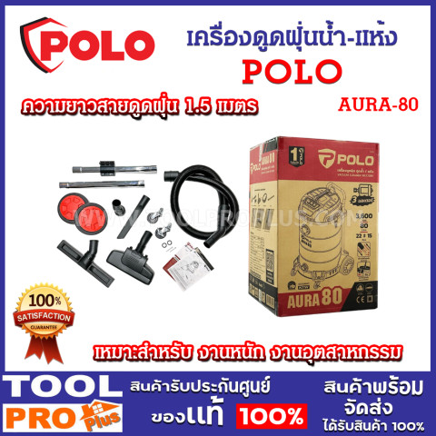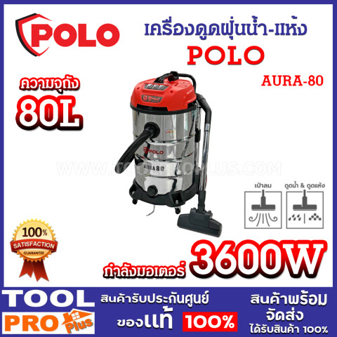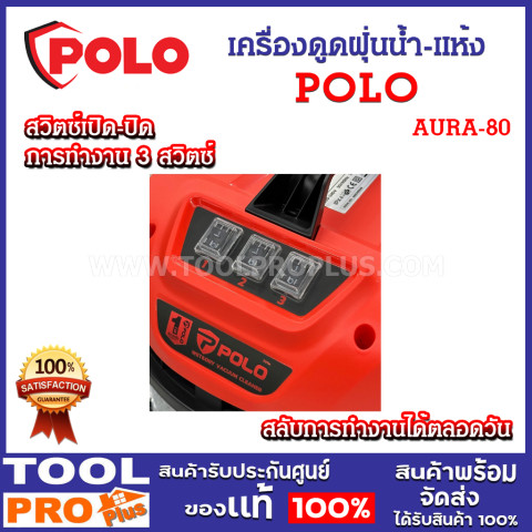 POLO เครื่องดูดฝุ่นน้ำ-แห้ง รุ่น AURA-80 (ถัง 80 ลิตร | มอเตอร์ 3 ตัว | งานหนัก) ราคา 7,390.00 บาท