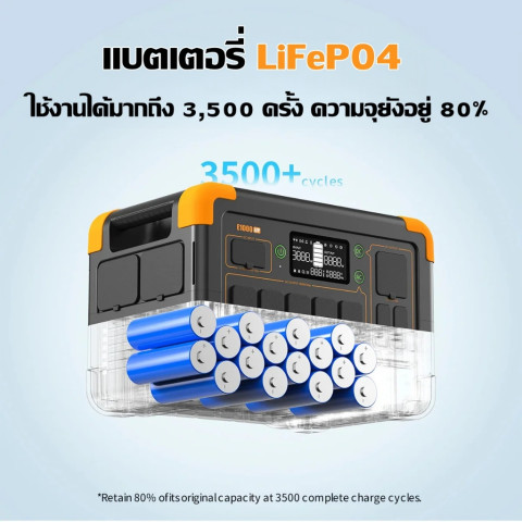 แบตเตอรี่ LiFePO4 ปลอดภัย อายุการใช้งานยาวนานกว่า 3,500 รอบชาร์จ (ถึง 80% ความจุ)